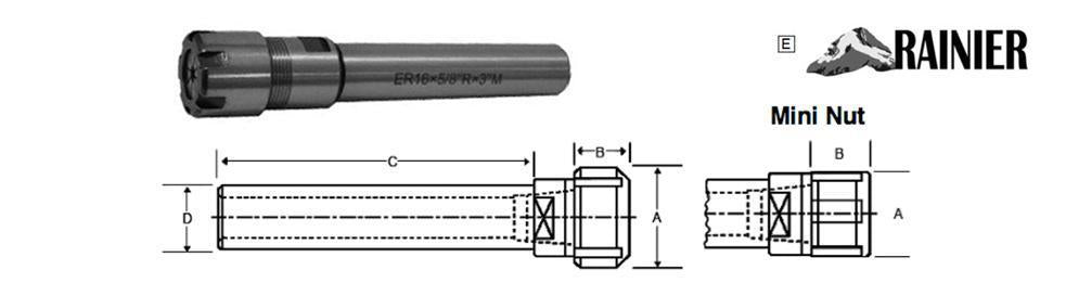ER11 0.500 4.00 0.63 0.44 Mini Flatted S-E11F05-40N-R M13X.75 CN-ER11MN-V WR-ER11MN